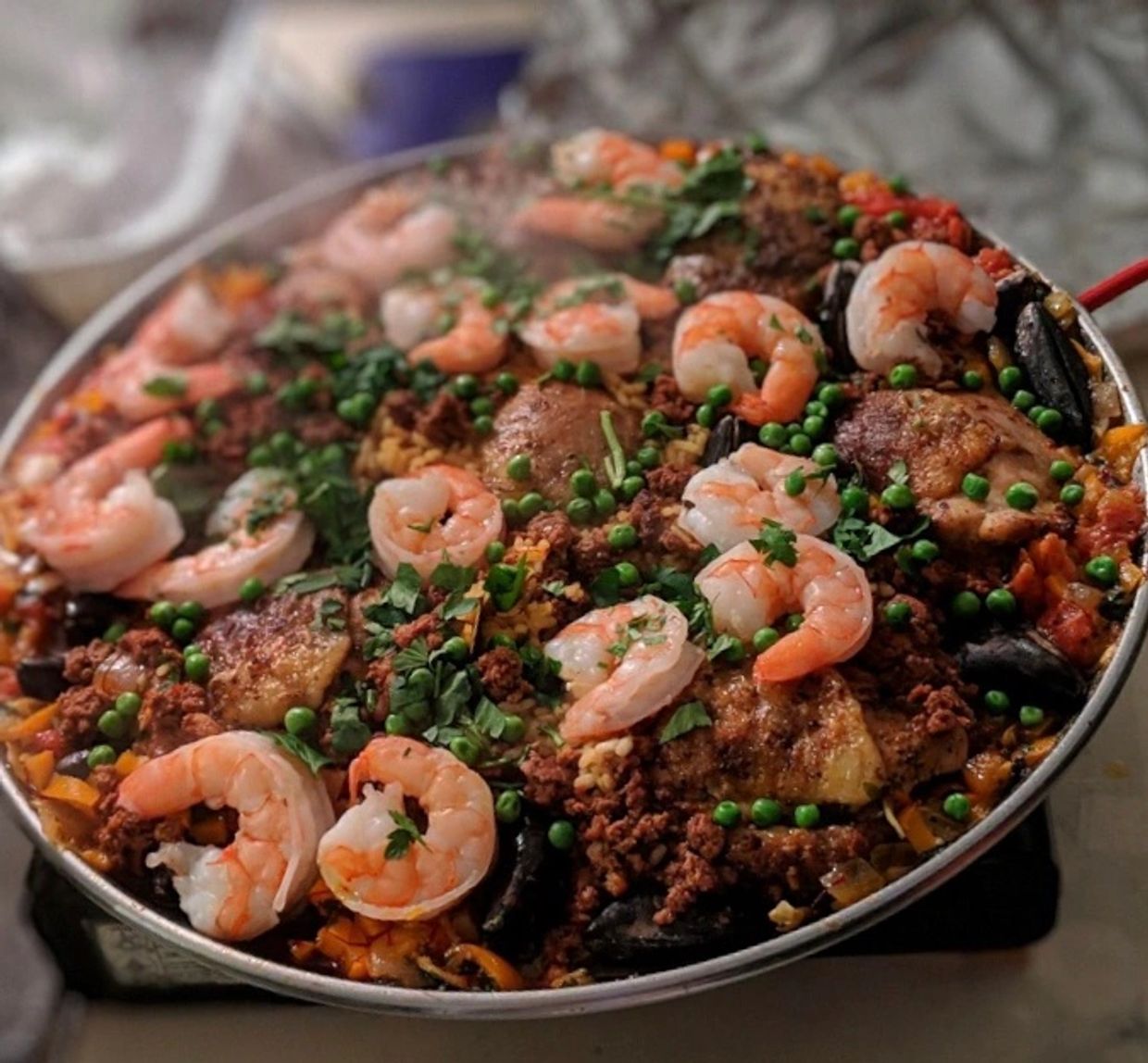 The McCarty’s had me back to prepare dinner for close friends that were in town for a visit. They wanted something special so we decided on Paella For the entree’. The appetizers were Crab Cakes w/my signature Remoulade Sauce and my Meatchetta. We prepared Banana Foster for dessert!